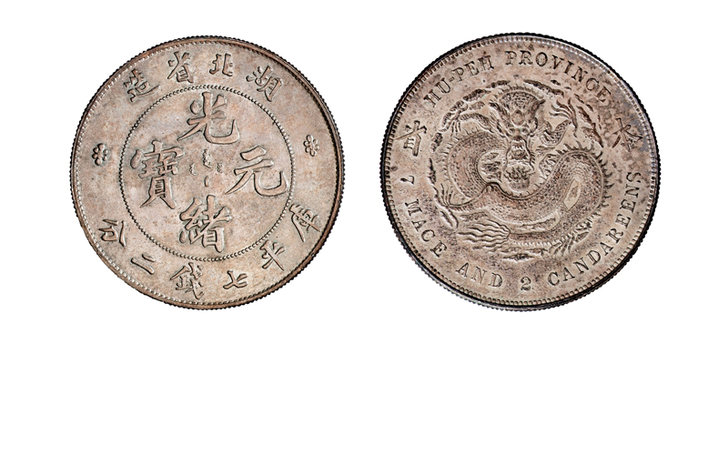 1896年湖(hú)北省造“本省”光緒元寶庫平七錢(qián)二分銀币一枚,由湖(hú)北銀元局仿廣東銀元鑄造流通(tōng)于市,初鑄時(shí)龍圖左右嵌“本省”二字,以示與外省有(yǒu)所區(qū)别,後因窒礙難行(xíng),收回再鑄時(shí),将“本省”兩字去之,未銷毀重鑄而留存至今者屈指可(kě)數(shù),并且多(duō)為(wèi)磨損或打戳,完全未使用品罕見。