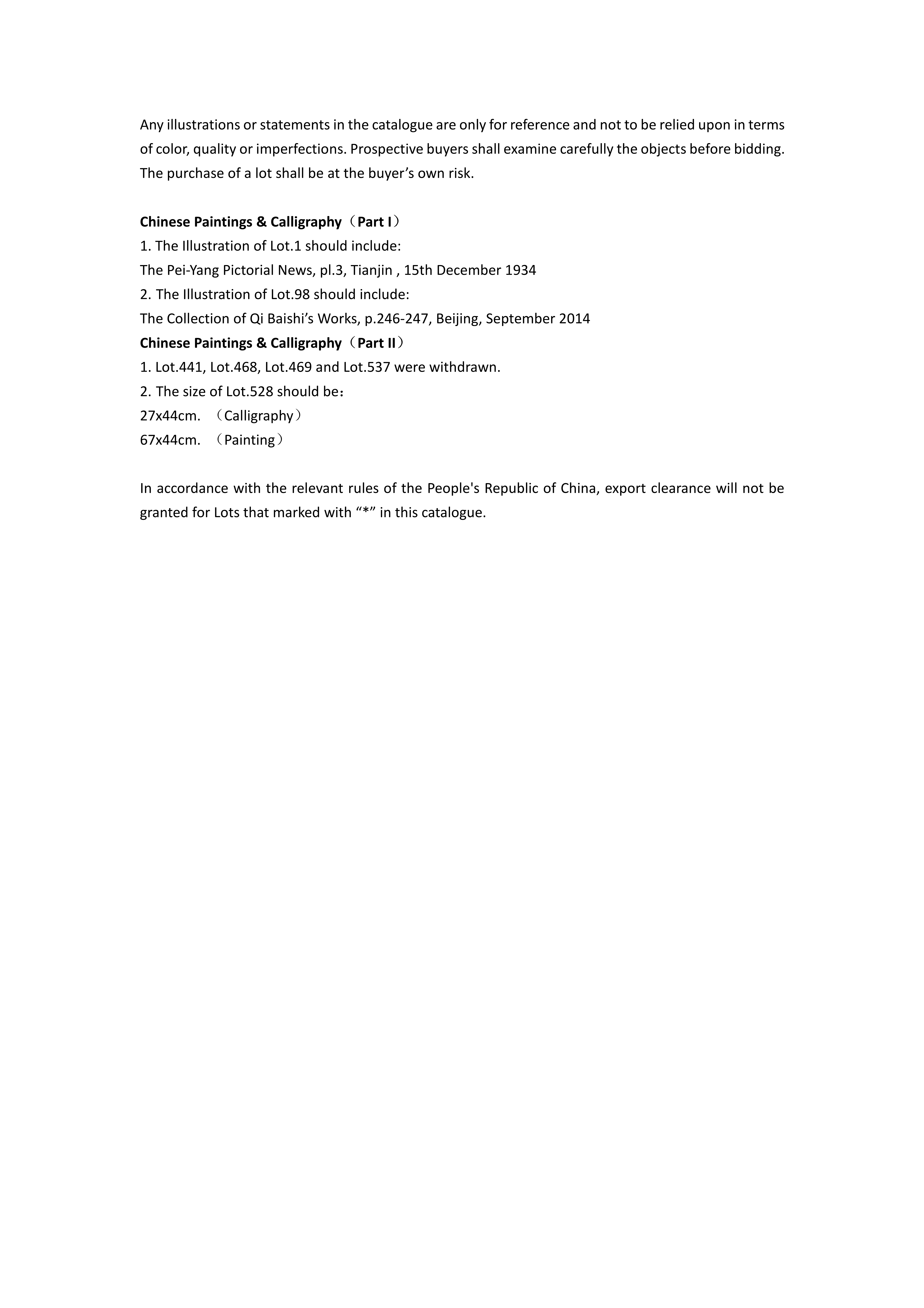• Statements and Corrections of Catalogues of 2023 Autumn Auctions