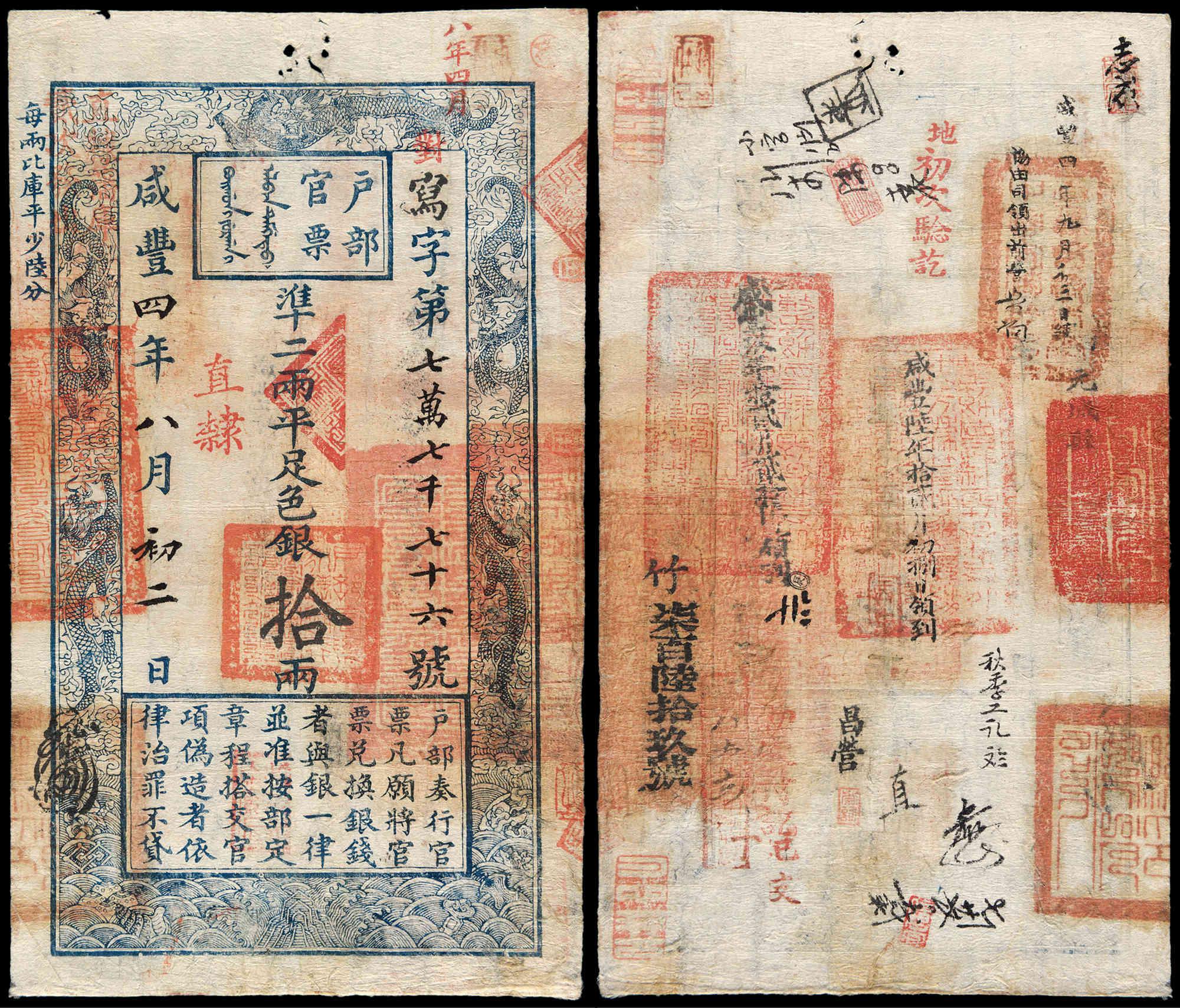 1854, Hu-Poo Official Note, 10 Taels, XF