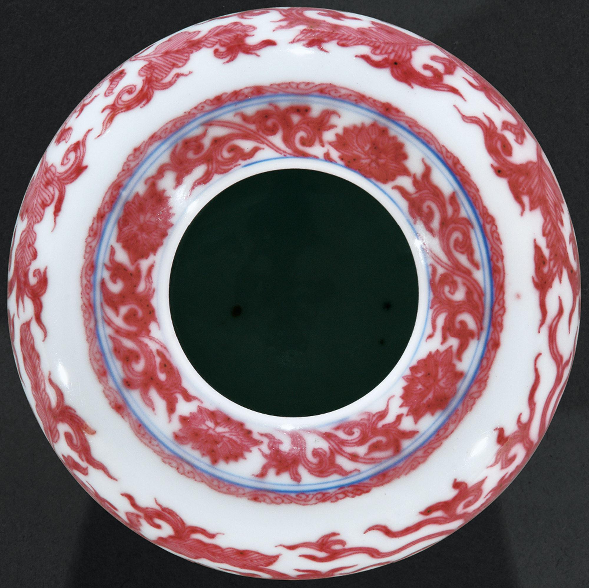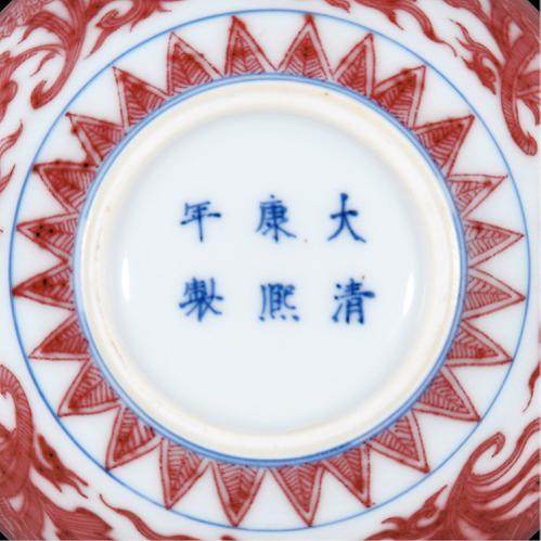 釉裏紅創燒于元代,受燒成溫度和(hé)窯內(nèi)氣氛影(yǐng)響較大(dà),故燒造難度極高(gāo),明(míng)永宣時(shí)期臻于成熟,明(míng)中期後漸趨衰落。康熙時(shí)期景德鎮窯業複興,許多(duō)在明(míng)代晚期沒落的品種重新煥發生(shēng)機,釉裏紅即為(wèi)其一。