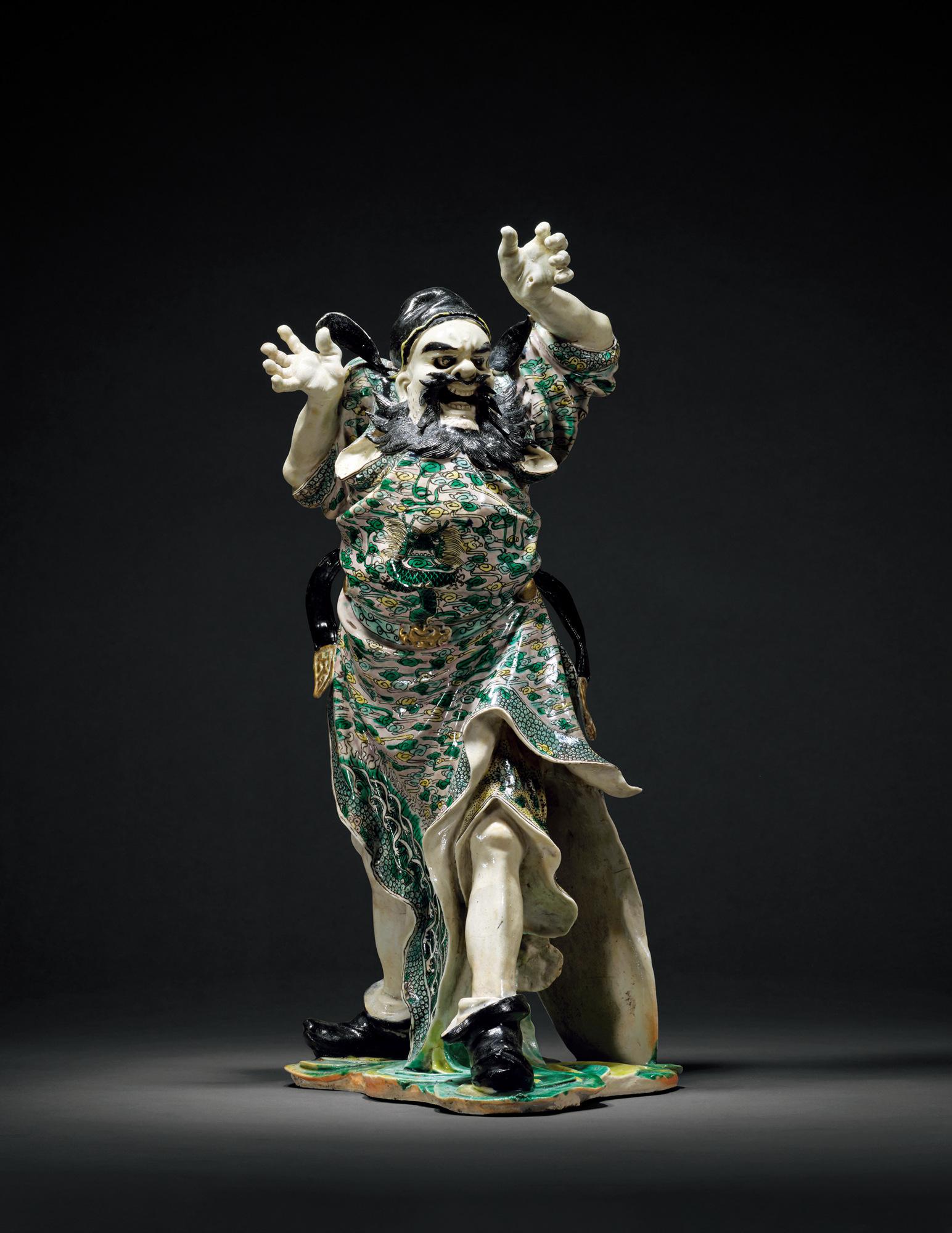 A LARGE AND FINELY CARVED FAMILLE VERTE FIGURE OF ZHONGKUI
