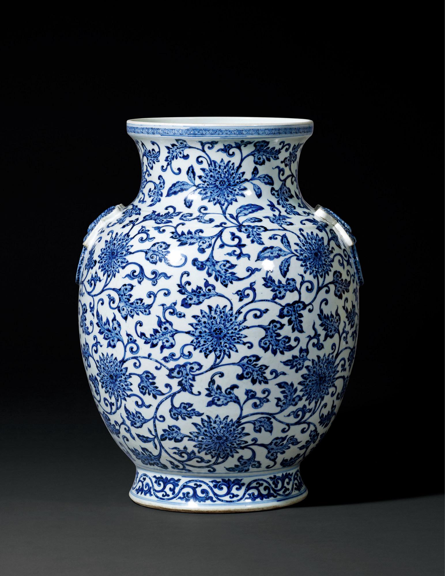 A FINE AND VERY LARGE BLUE AND WHITE ZUN VASE
