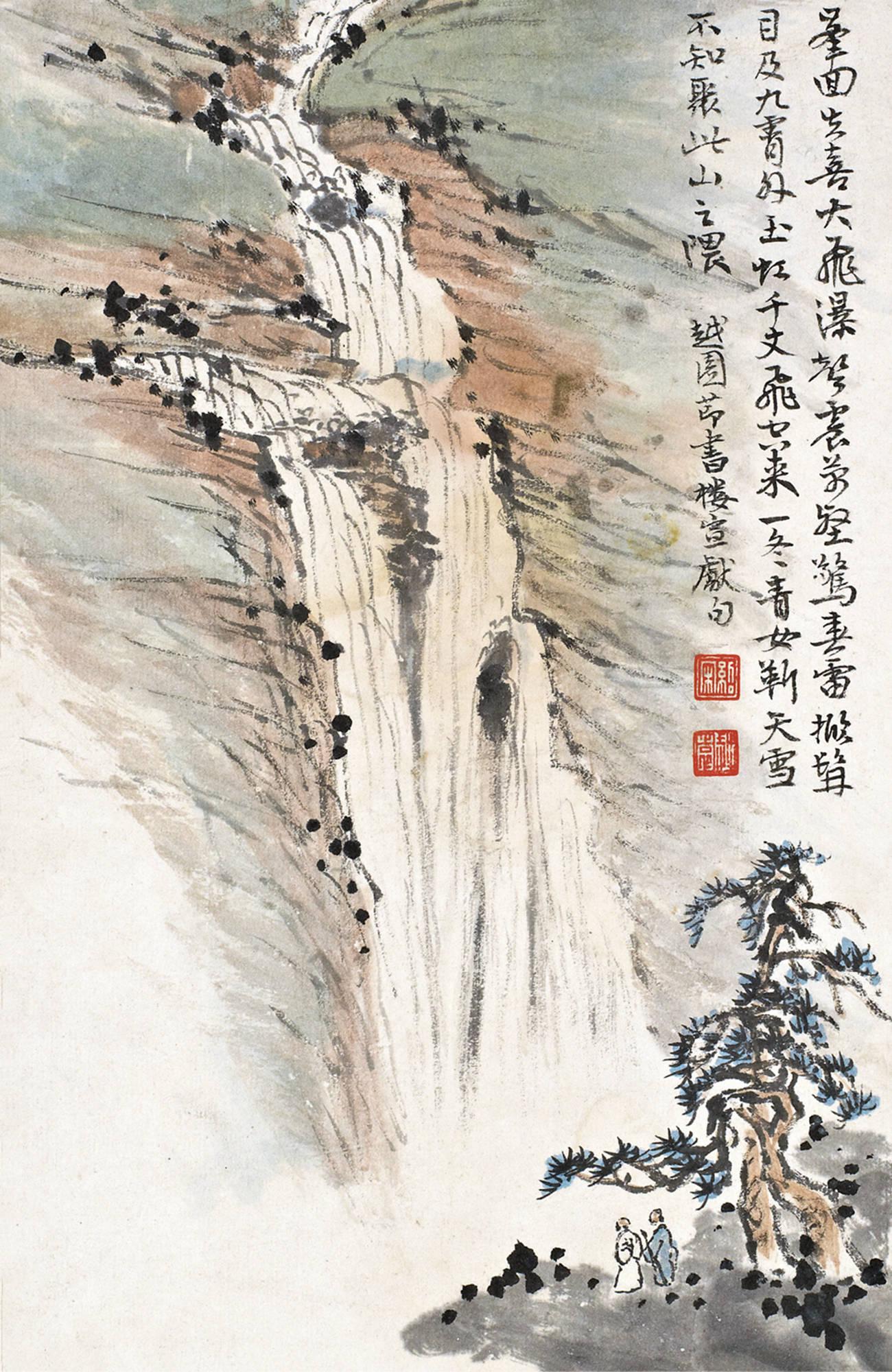 題識:峰回失喜大(dà)飛瀑,聲震萬壑驚春雷。掀髯目及九霄外,玉虹千丈飛空(kōng)來(lái)。一冬青女靳天雪,不知聚此山(shān)之隈。越園節書(shū)樓宣獻句。