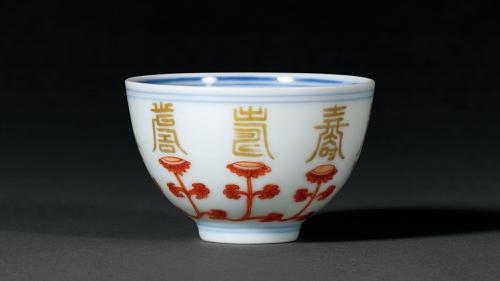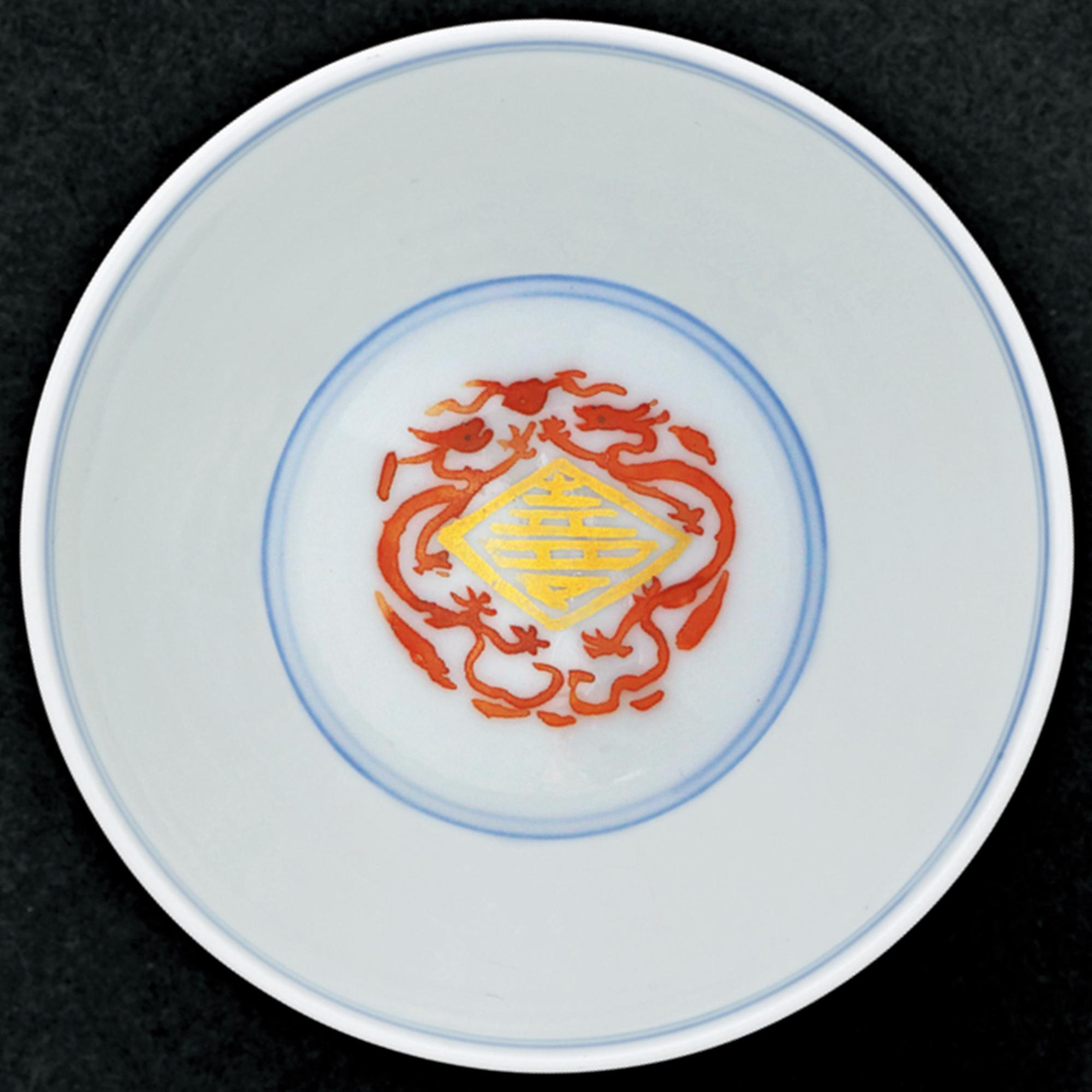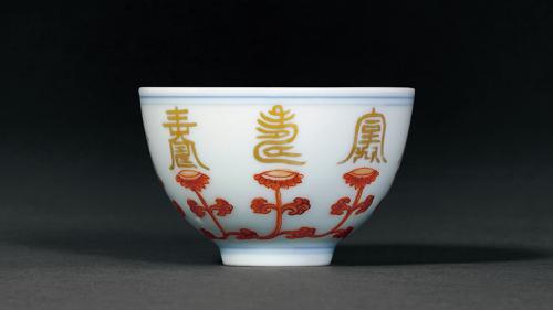 A FINE AND RARE IRON RED WITH GOLDEN DECORATED CUP