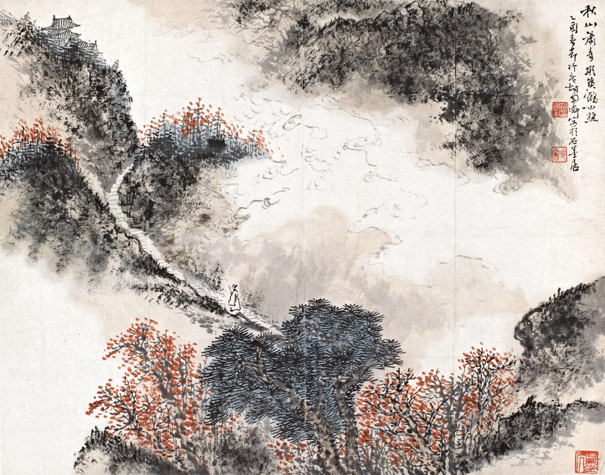 Hanging scroll, ink and color on paper.