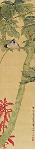 Hanging scroll, ink and color on silk.