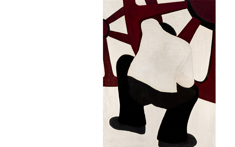 賀慕群出生(shēng)、成長于民國時(shí)期,屬于第二代赴法女性畫(huà)家(jiā)。1965年起定居巴黎,其作(zuò)品明(míng)顯受到“後印象派”和(hé)“巴黎畫(huà)派”的影(yǐng)響,形式構成簡潔,自覺追求平面意味,色彩優雅而略含憂郁,情緒敏感而克制(zhì),帶有(yǒu)早期“表現主義”比較溫和(hé)的情感面貌。盡管賀慕群從未進過正規的藝術(shù)院校(xiào),但(dàn)她憑借自己的天賦和(hé)勤奮,1968年巴黎“婦女沙龍展”中以《玩具系列》獲得(de)油畫(huà)大(dà)獎,嗣後,在歐洲各國巡回展出。 《蹲》創作(zuò)于1970年,構圖簡潔,意蘊豐富。畫(huà)中白衣黑(hēi)褲的人(rén)蹲坐(zuò)于中央,右肘撐膝,左肩高(gāo)聳,似乎是在擺弄修理(lǐ)眼前巨如車(chē)輪的器(qì)具,呈現出面朝畫(huà)裏背朝外的經典造型。畫(huà)家(jiā)采用大(dà)面積的純色平塗,在色彩的明(míng)暗和(hé)碰撞之間(jiān)塑造形象,消解陰影(yǐng)而不失體(tǐ)積感。畫(huà)家(jiā)筆下的每一層油彩都很(hěn)薄,但(dàn)是多(duō)層疊加,白色油彩輕輕地覆蓋在黑(hēi)、棕色之上(shàng),平而薄的質感頗具版畫(huà)的視(shì)覺效果。