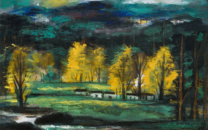 年代: 1990年代初 紙本 彩墨 68.8×137 cm. 美術(shù)史學者沈揆一初見李華弌作(zuò)品,即被深深打動,感言到:“有(yǒu)明(míng)顯的傳統風氣,又有(yǒu)超越傳統的非常現代的感覺在裏頭。”李華弌在大(dà)洋彼岸創作(zuò)出動人(rén)心脾的水(shuǐ)墨作(zuò)品,成為(wèi)華人(rén)當代水(shuǐ)墨的一面旗幟。 亦中亦西的求學之路