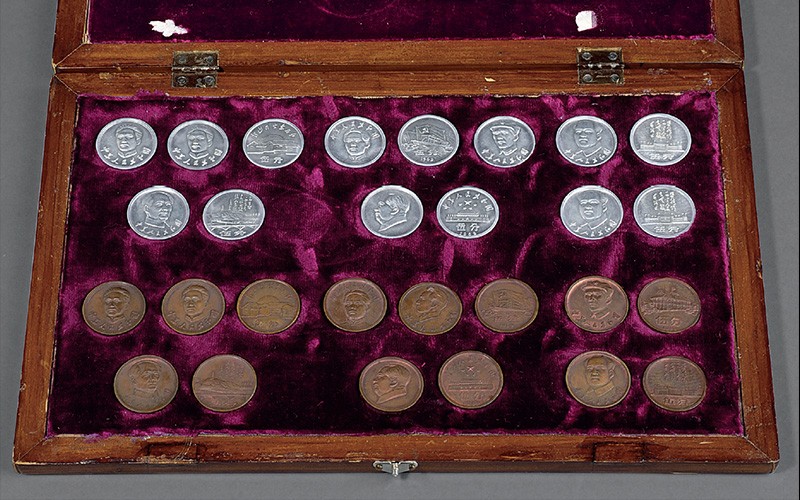 1968年至1969年第二版人(rén)民币硬分币毛澤東像未采用稿試鑄樣币一組二十八枚,其中鋁質、銅質各十四枚,直徑均為(wèi)25毫米,其中,鋁質1分一枚,銅質1分二枚,其餘均為(wèi)5分;此組樣币均未見官方記載,雕刻精美,鑄造規整,材質精良;二十八枚毛澤東像有(yǒu)青年、中年及老年多(duō)種,背面配韶山(shān)、南湖(hú)船(chuán)、遵義會(huì)議會(huì)址、延安寶塔山(shān)、天安門(mén)、人(rén)民大(dà)會(huì)堂等不同革命聖地圖案,雕刻精緻美觀,鑄工精湛;此樣币全數(shù)置于專用木盒內(nèi),部分為(wèi)一種二枚,正、背面放置,以方便觀覽,應屬造币廠試鑄後上(shàng)呈審批之樣品,均未正式鑄行(xíng),每枚均存世極罕,二十八枚同時(shí)呈現,當屬絕無僅有(yǒu),為(wèi)海內(nèi)外錢(qián)币拍賣會(huì)有(yǒu)史以來(lái)首次,不僅是珍貴的人(rén)民币樣币,更是文革時(shí)期的珍貴貨币文物,具有(yǒu)重要的貨币史料價值與收藏價值,完全未使用品