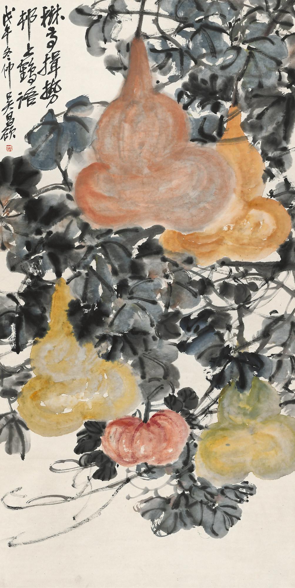 吳昌碩 秋果黃且紅如錦 立軸 設色紙本 1918年作(zuò)