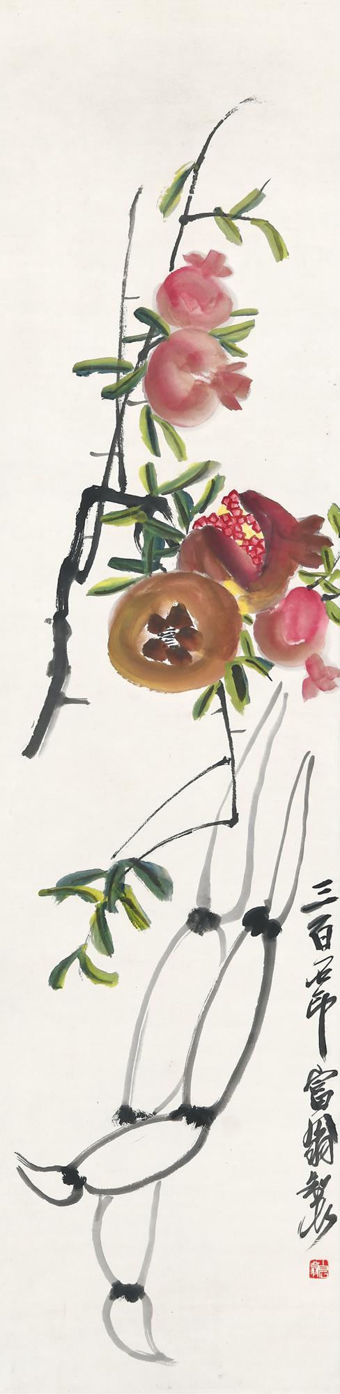 齊白石 嘉偶多(duō)子 立軸 設色紙本