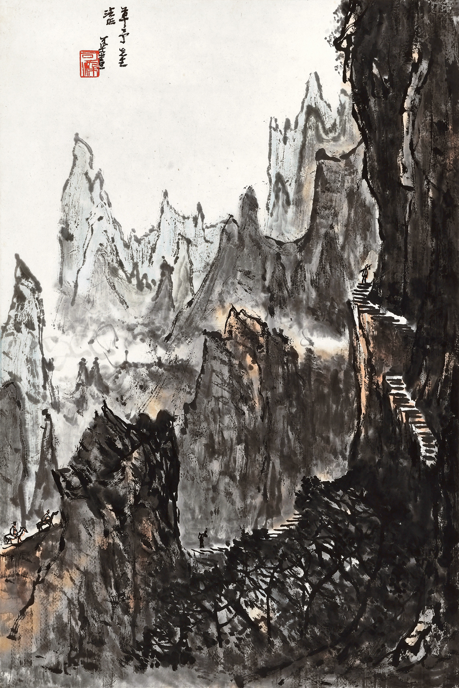 李可(kě)染 棧道(dào)行(xíng) 立軸 設色紙本