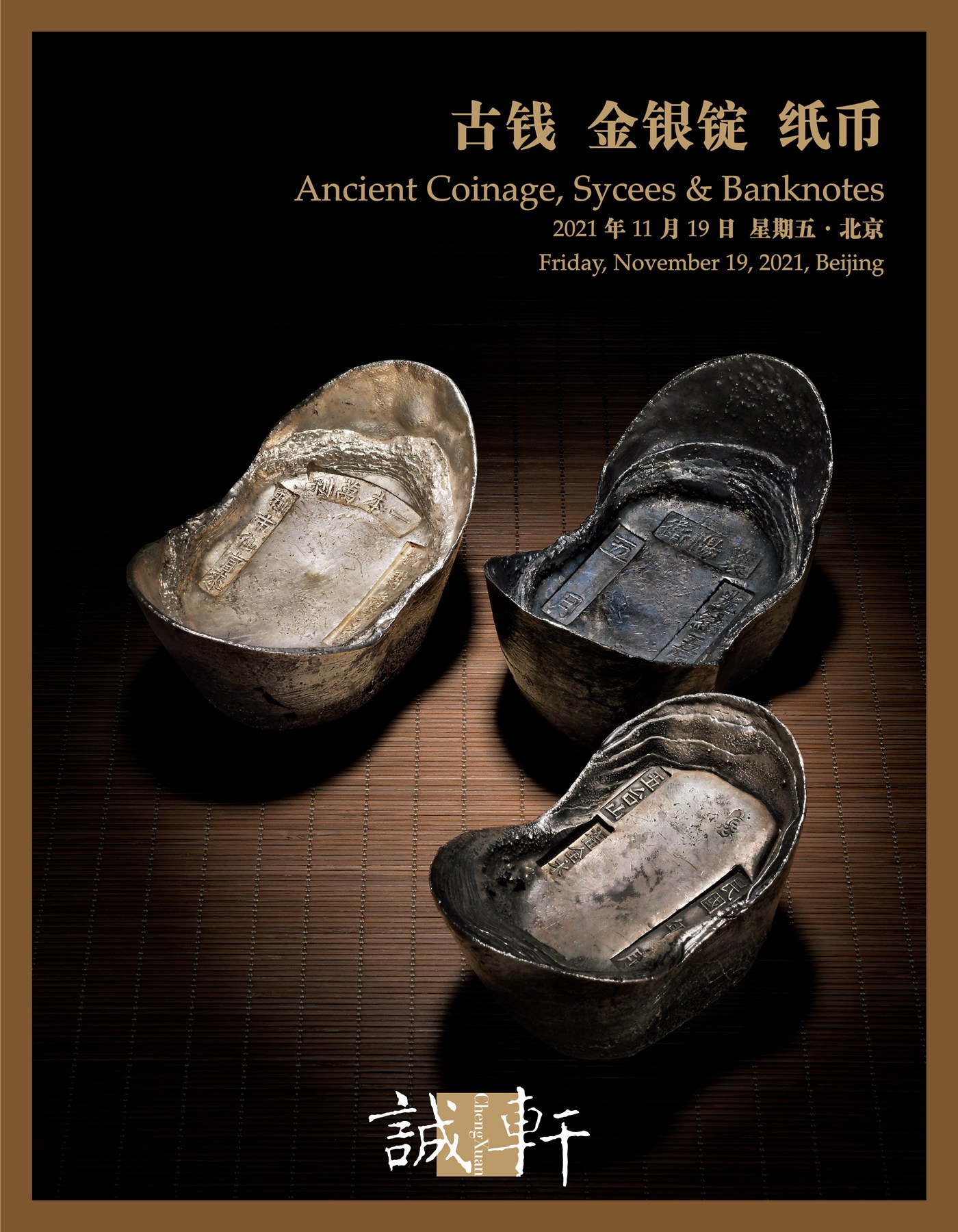 清代“一本萬利 招财童子至 利市仙官來(lái)”五十兩開(kāi)爐吉語錠一枚,重量:1884.2克;開(kāi)爐吉語錠是銀爐在歲初開(kāi)爐鑄寶時(shí),特别鑄造的鎮爐寶銀,通(tōng)常不流通(tōng),不僅成色足,工藝也較普通(tōng)品更為(wèi)精美,因鑄造數(shù)量稀少(shǎo)、銘文寓意吉祥,常被作(zuò)為(wèi)鎮宅之寶,深受藏家(jiā)的追捧;拍品鑄造精整,錠面平坦開(kāi)闊,寶光四溢,三方戳記完整清晰,底部蜂窩晶瑩璀璨,堪稱完美收藏級佳品,GBCA MS63+