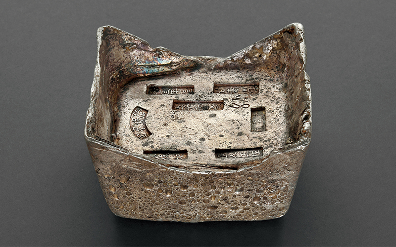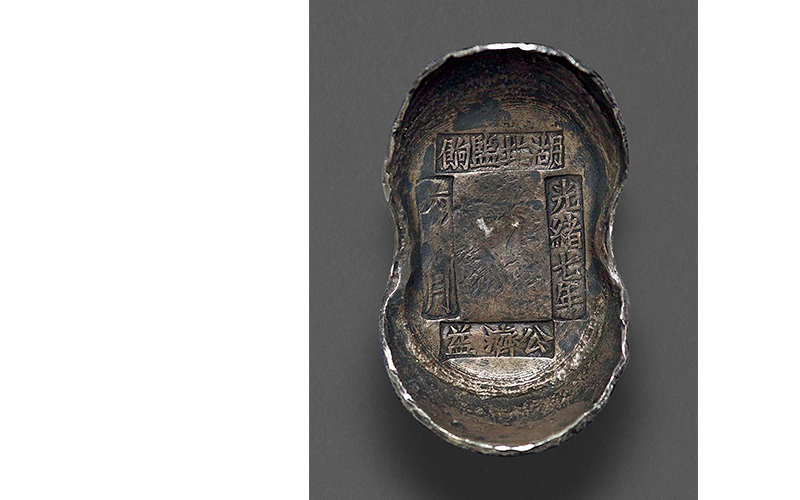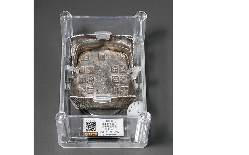 清代湖(hú)北“光緒七年 六月 湖(hú)北鹽饷 公濟益”五十兩銀錠一枚,重量:1826.5克,公濟益銀号代鑄之鹽稅錠,鑄造規整,銘文峻拔大(dà)氣,包漿原始厚重,存世稀少(shǎo),作(zuò)為(wèi)湖(hú)北稅錠重要品種,夙為(wèi)藏家(jiā)夢寐以求;剪邊,中乾評級 極美